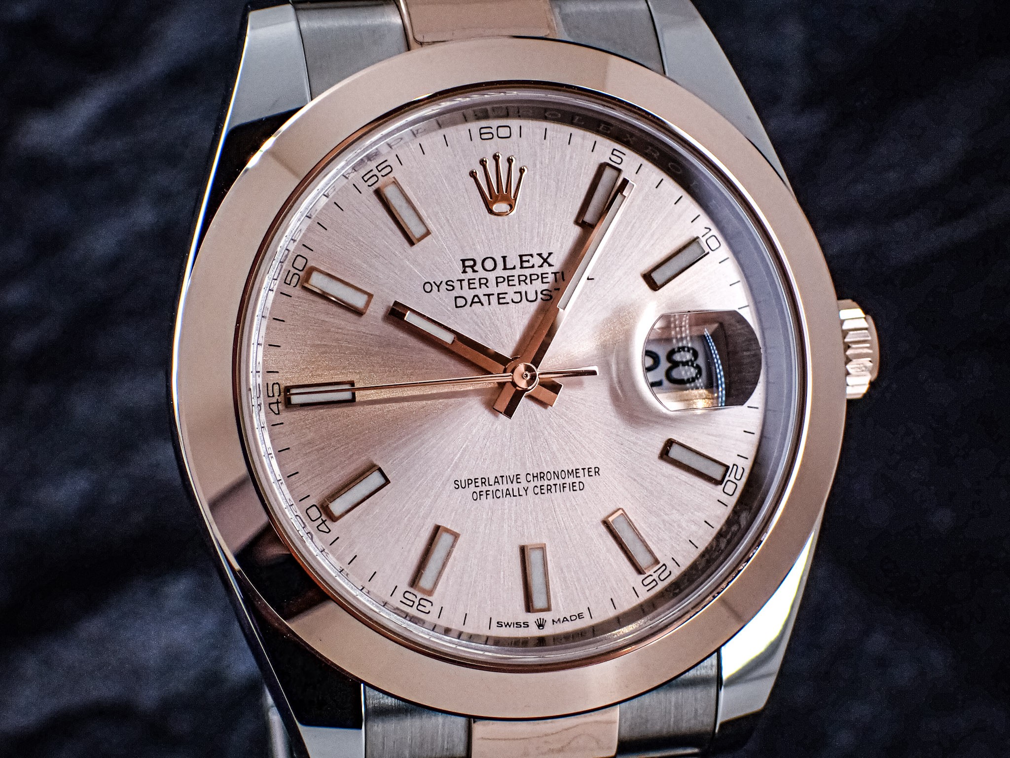 エバーローズゴールドとコンビになっているこちらのデイトジャスト。
