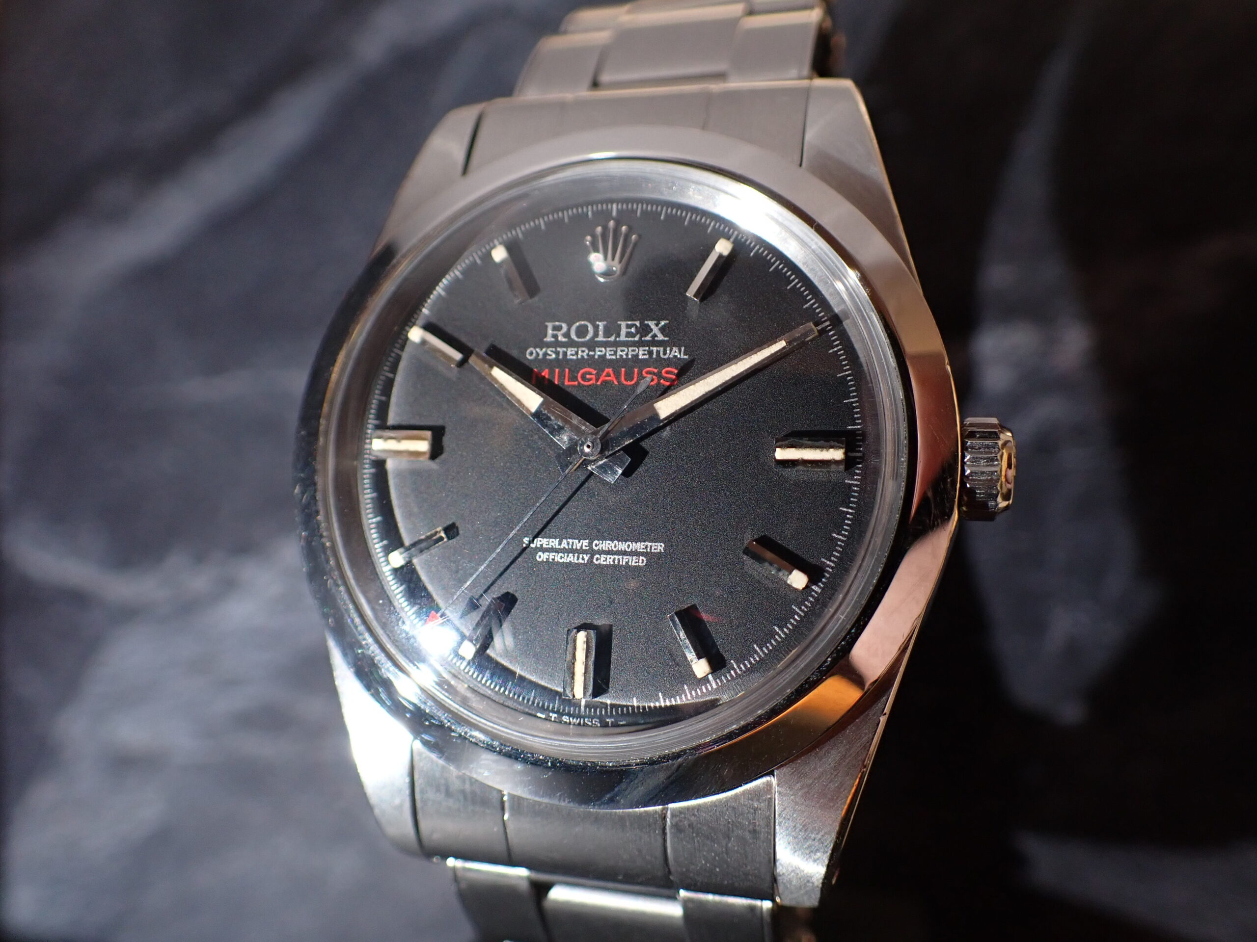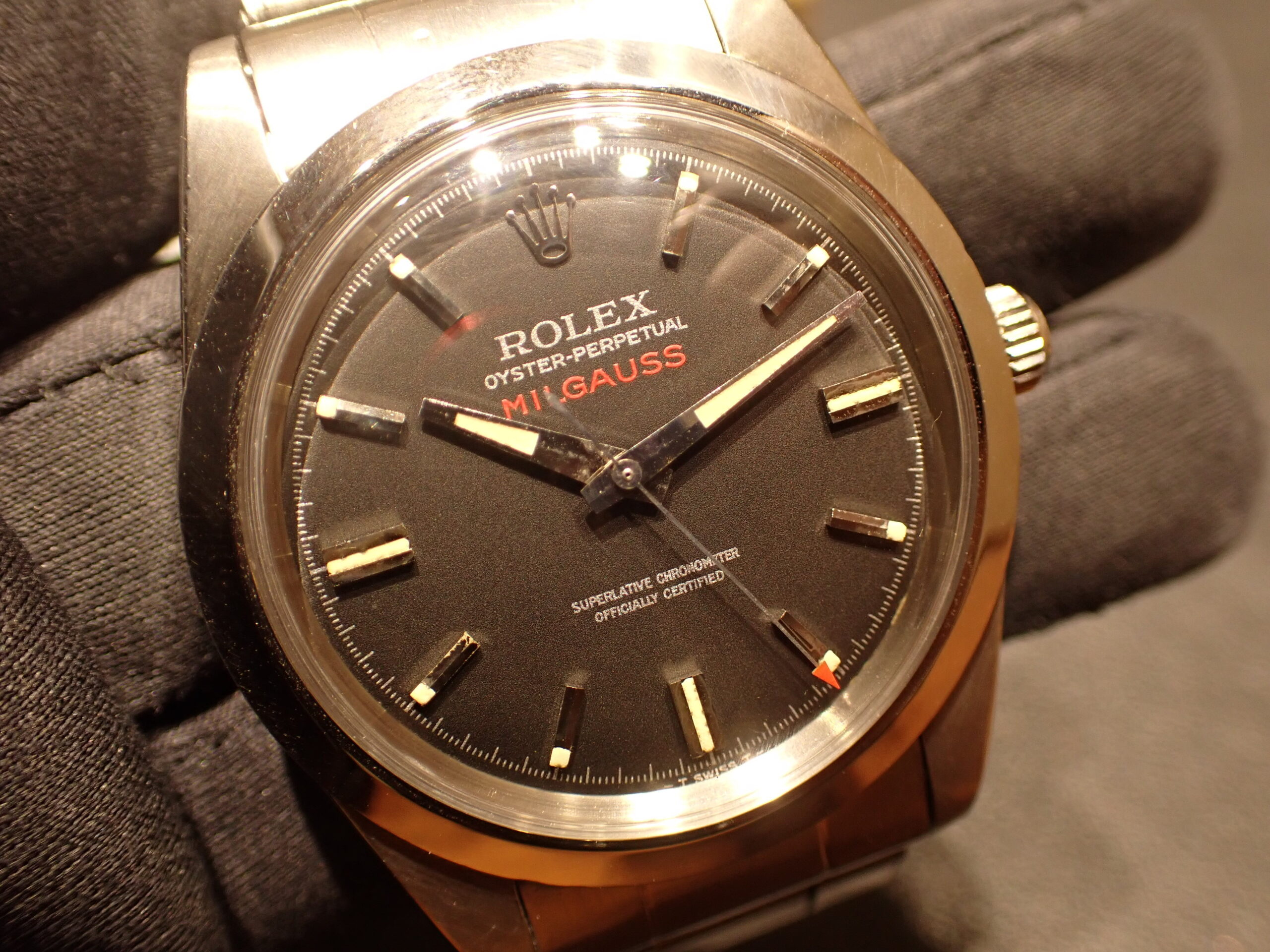 本日はミルガウス Ref.1019 をご紹介いたします。第2世代として登場し、製造年数だけを見れば約20年と長いですが、個体数は少ないです。さらに付け足すと、シルバーとブラックの2色展開ある中で、圧倒的にブラックの方が流通量が少ないです。ヴィンテージロレックス愛好家の間では、常に注目されているモデルです。こちらの個体は、ケースはやや痩せてはおりますが目立つような打痕等もみられません。夜光の欠落も無く、ここまでの個体は中々見られません。既にメンテナンスも済ませている為、すぐにご着用いただけます。年々良個体のRef.1019の在庫が少なくなりつつありますので、ご興味のあるお客様はお早めのご決断をオススメいたします。詳細等気になる方はお気軽にクォーク名古屋駅店までお問い合わせください。