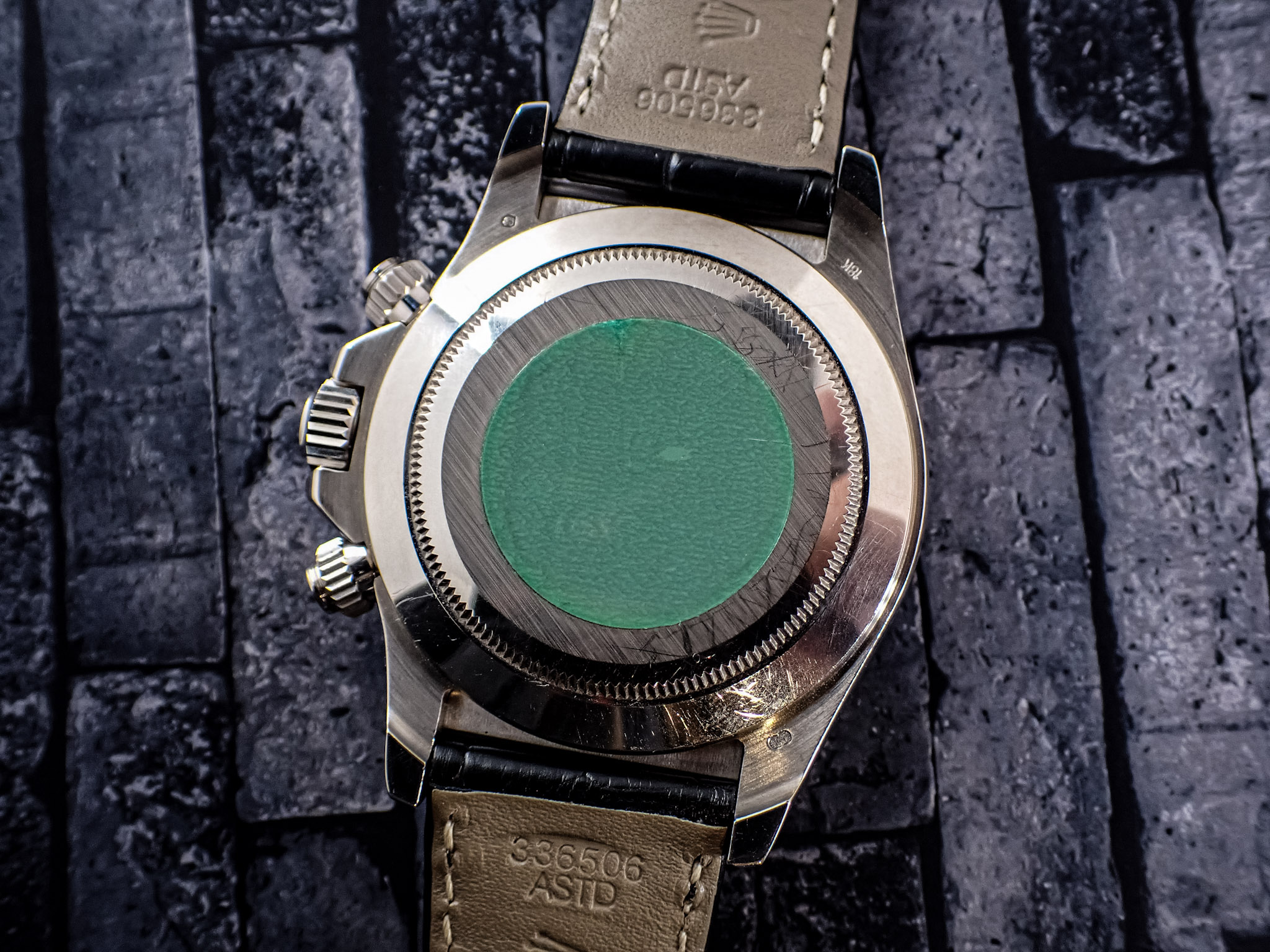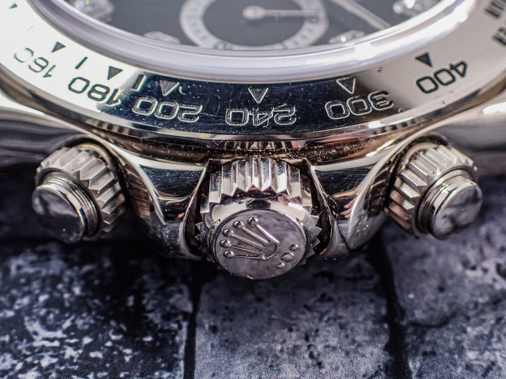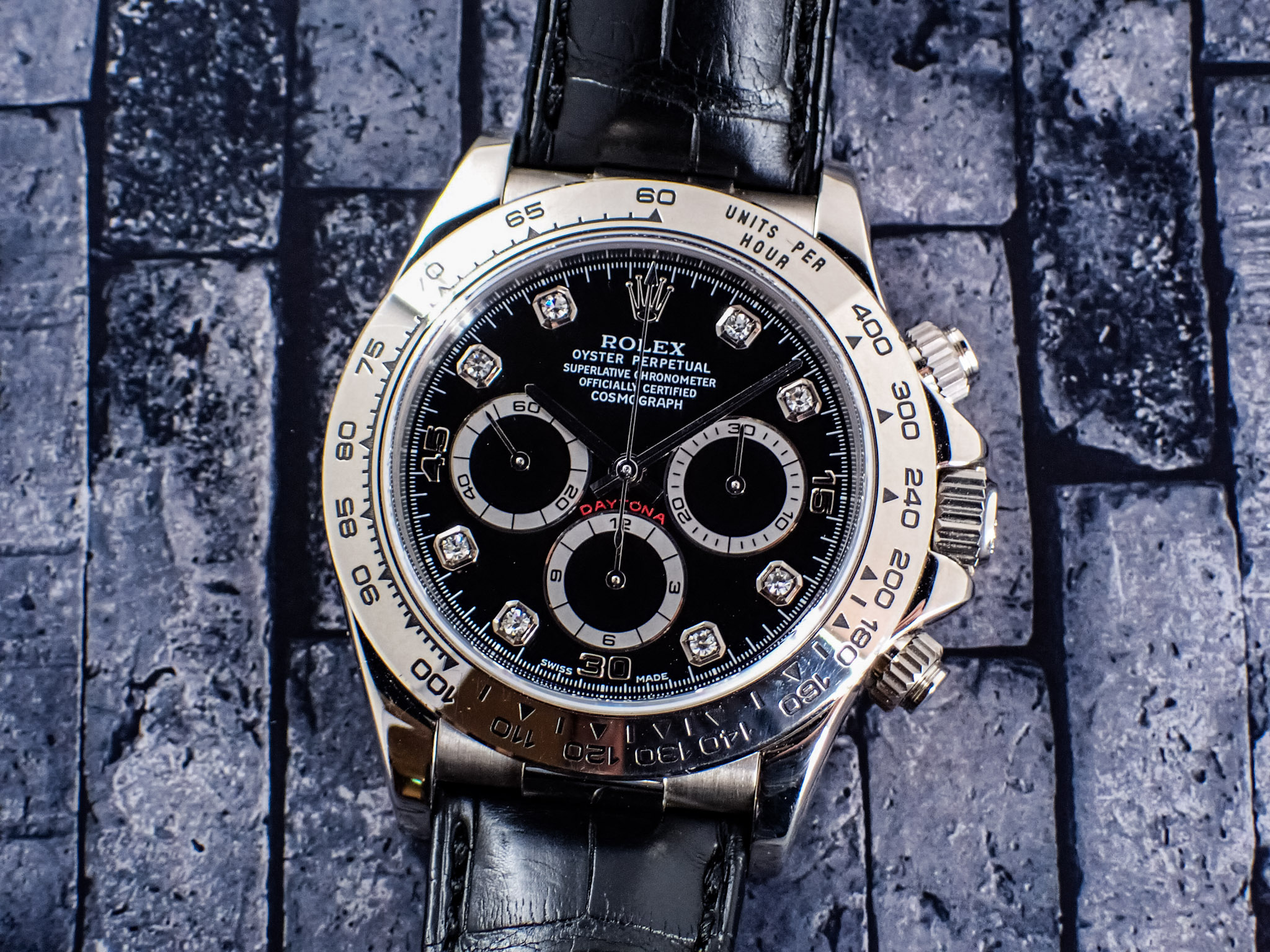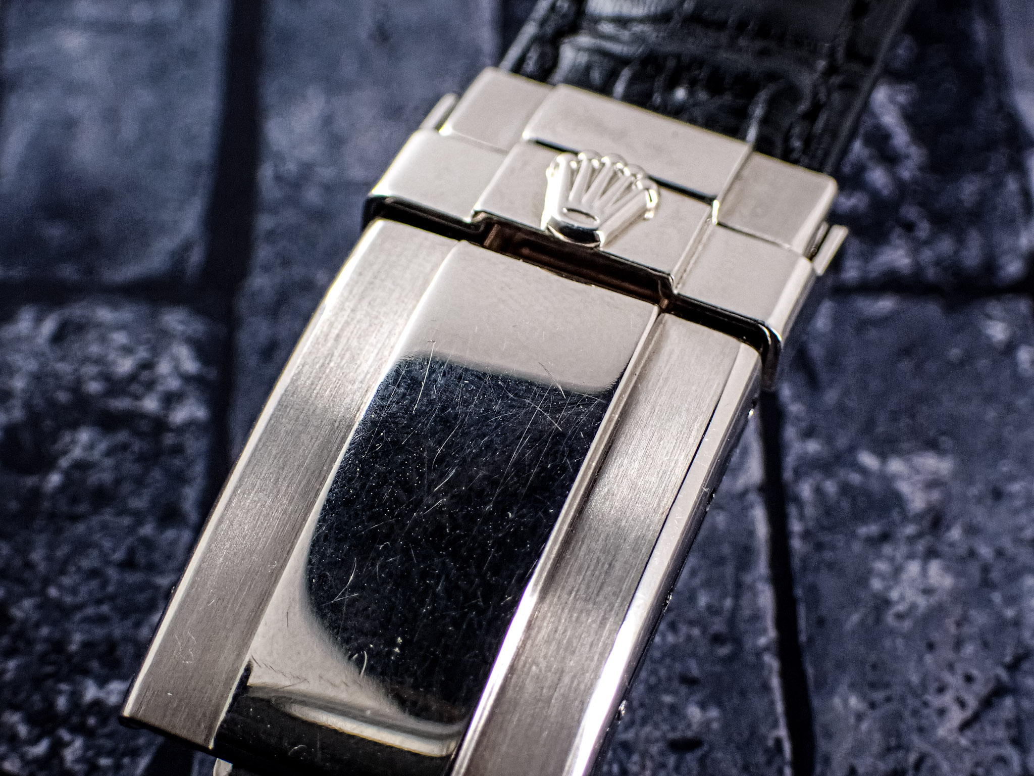 本日はデイトナ Ref.16519G をご紹介いたします。ステンレスモデルとは違う輝きを放つ1本。エルプリデイトナはステンレスモデルに目が行きがちですが、生産期間の短さと個体数の少なさから今後さらに化ける可能性を秘めたモデルとして注目されています。ホワイトゴールドならではの重厚感を味わいつつも、クロコのレザーベルトで印象を一気に引き締めてくれます。こちらの商品は、使用傷は残っているものの、ポリッシュ感が少なく保証書も付属しており、大変魅力的な個体です。今後"期待大"のモデルです。詳細等気になる方はお気軽にクォーク名古屋駅店までお問い合わせください。