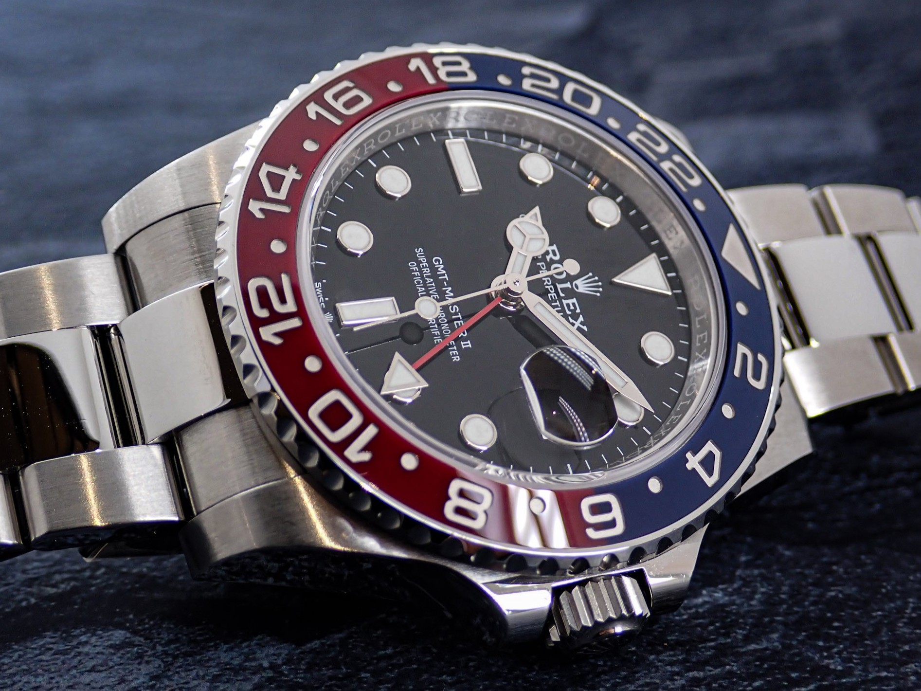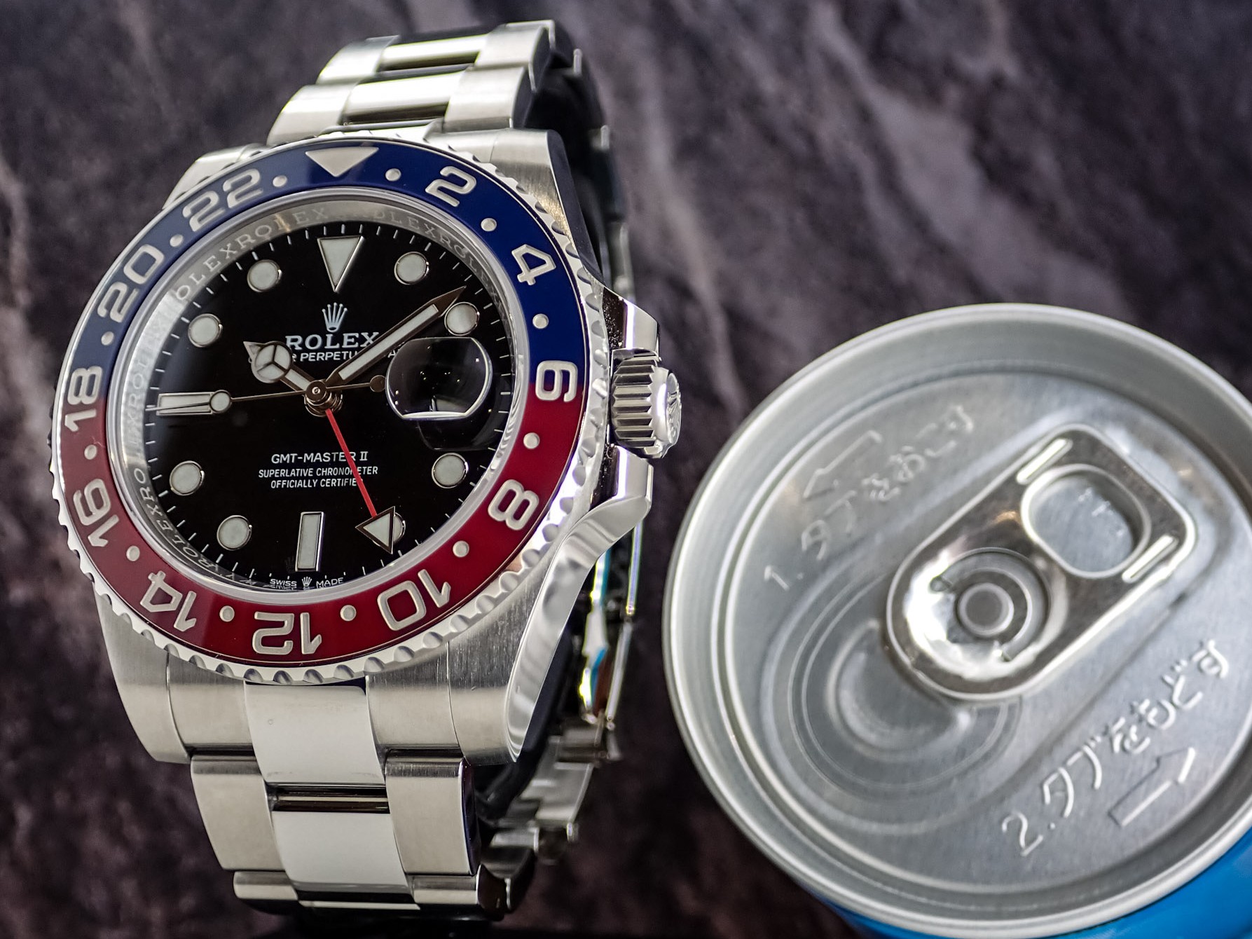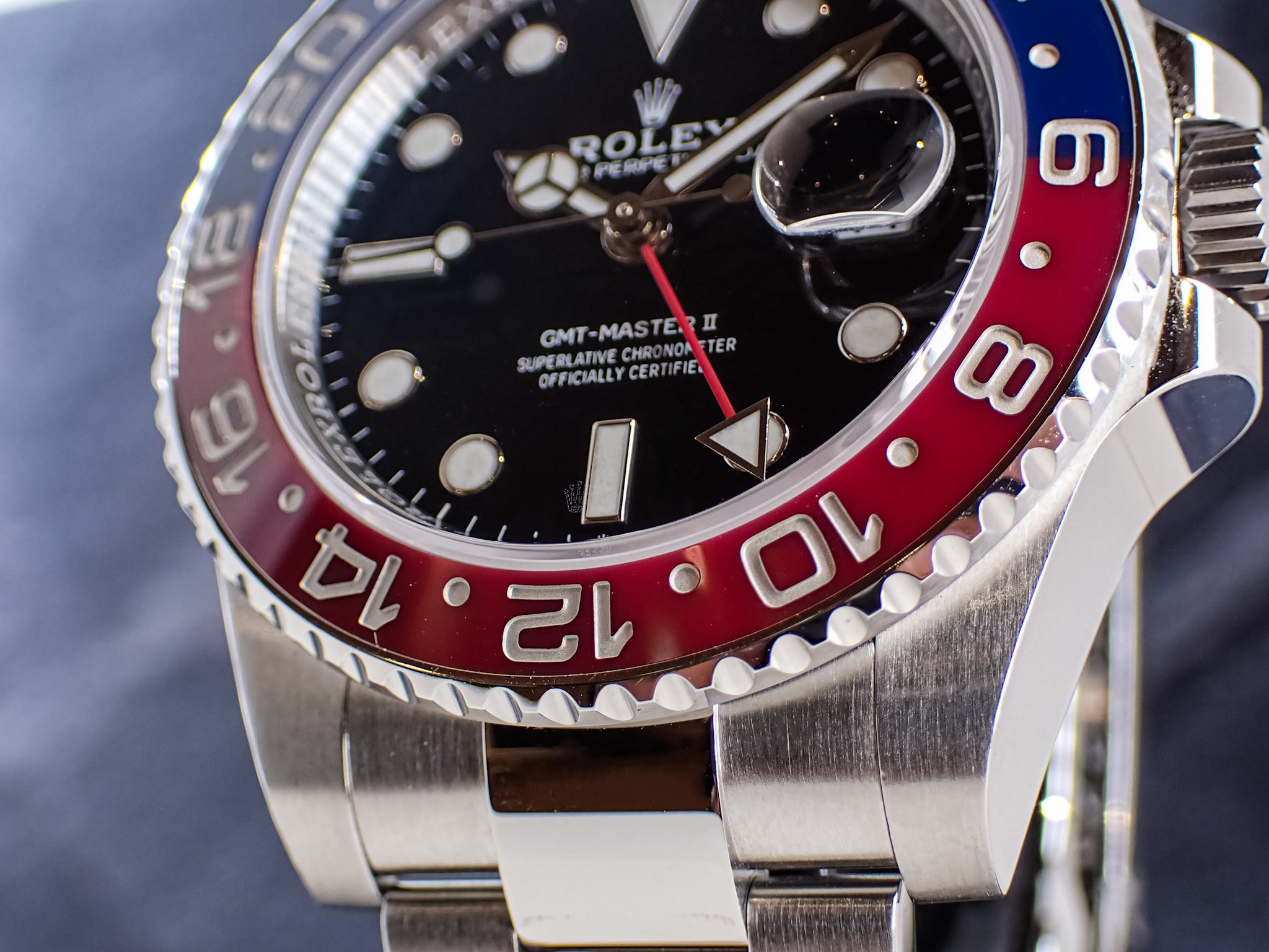 現行のGMTの中でも長年人気があるのが、こちらの赤青ベゼルが特徴的な通称『ペプシ』と呼ばれる126710BLROです。