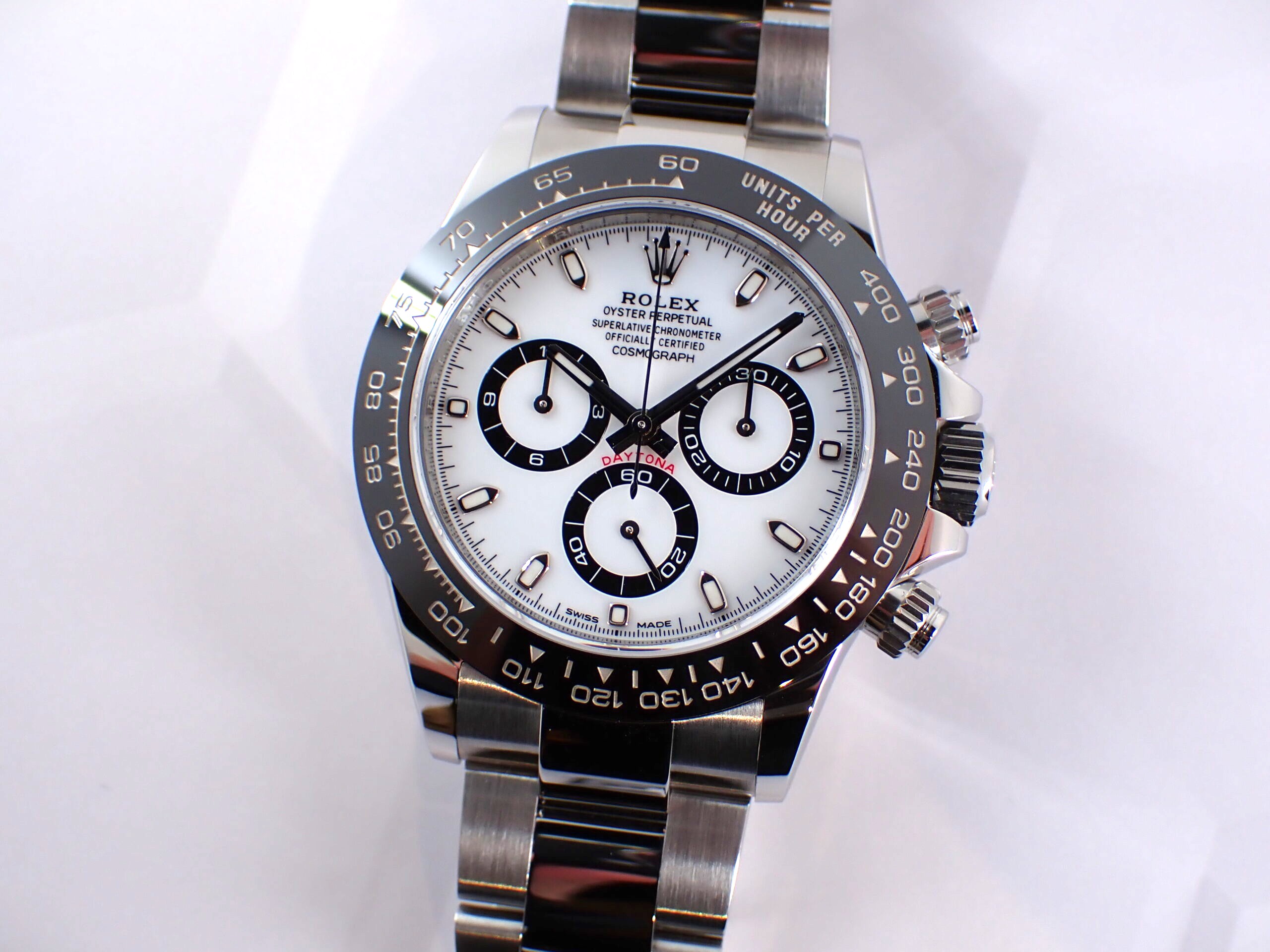 本日はデイトナ Ref.116500LN をご紹介いたします。タイトルにある通りこちらの商品は割安商品です。理由はギャランティーが付属しないからです。一見ネガティブなイメージがあるかもしれませんが、決してそのような事はありません。将来手放す前提であれば付属品が揃っている個体が魅力的ですが、一生の相棒を探されている方にとっては、むしろ保証書無しの個体の方がオススメだと感じております。敬遠される方が多いからこそ、安くお求めいただけます。そういった点でこの個体は狙い目です!当然ですが時計そのものにこれだけの価値が付いているという証明でもあります!あなたが時計を買う際に重視されているポイントによっては、一番賢い選択になる可能性があります。少しでも予算を抑えたい方や、今後手放すつもりが無い方は特にご検討していただく価値があります!お気軽にクォーク名古屋駅店までお問い合わせください。