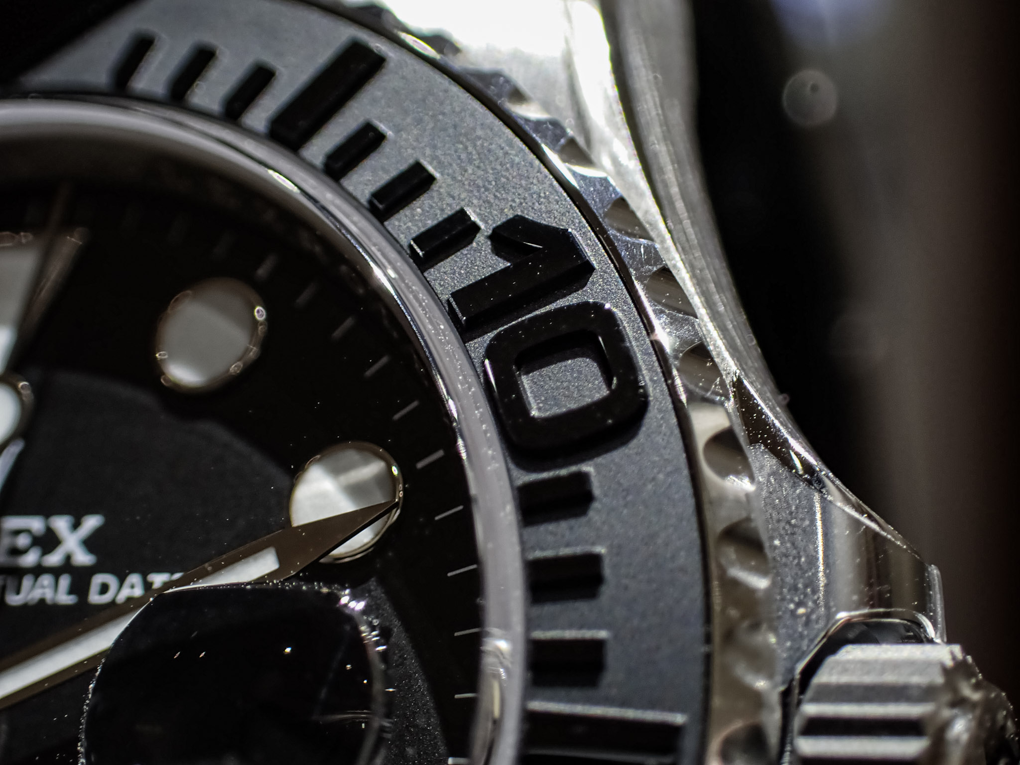 ヨットマスターシリーズと言えば、スポーツモデルの中でもラグジュアリーな見た目をしていますが、このお時計はベゼルがマッドブラックになっており、落ち着いた見た目になっております。