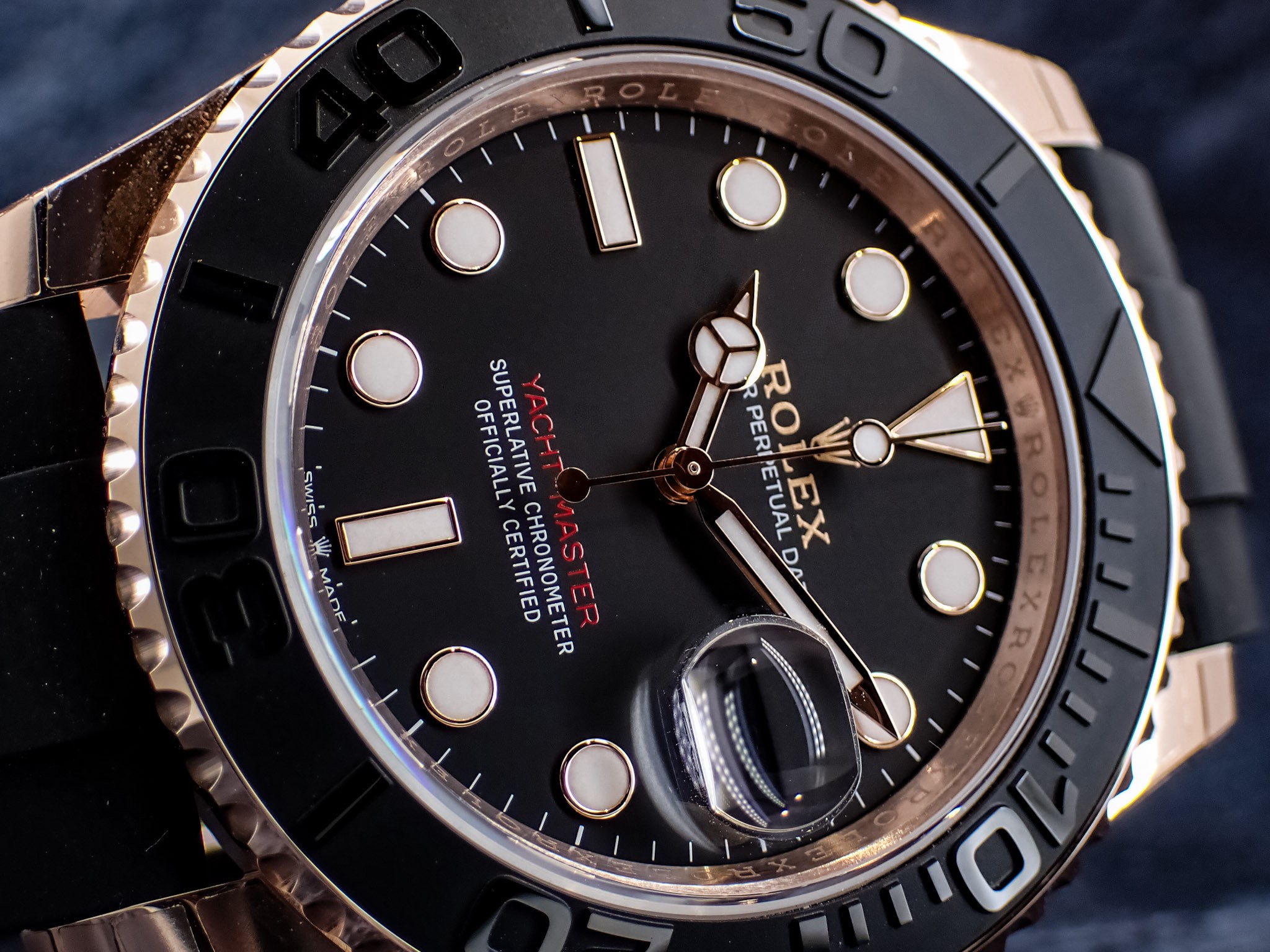 オイスターフレックスのブレスを搭載した金無垢モデルのヨットマスターは現在3種類ラインナップされております。