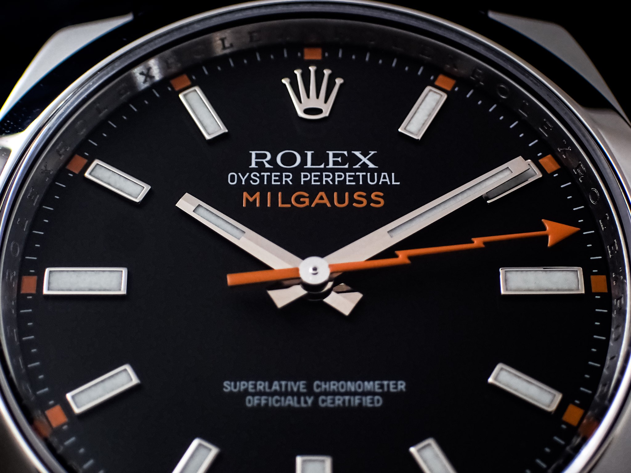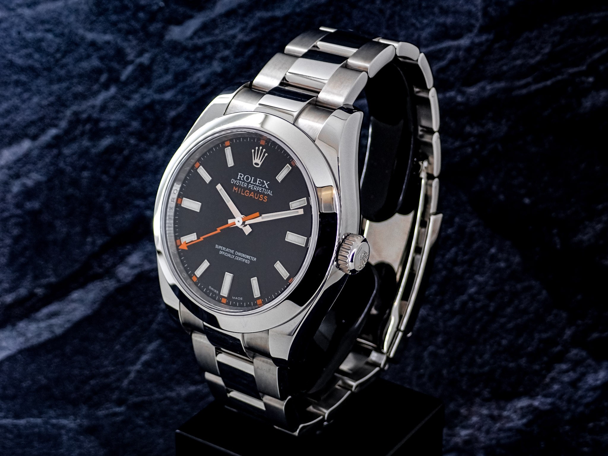 今回はブラックダイヤルですが、ホワイトや四代目のグリーンサファイアクリスタルが使われている『116400GV』とラインナップがある中でそれぞれの個性がありますし、電化製品が多く普及している現代社会だからこそ【ミルガウス】おすすめです!