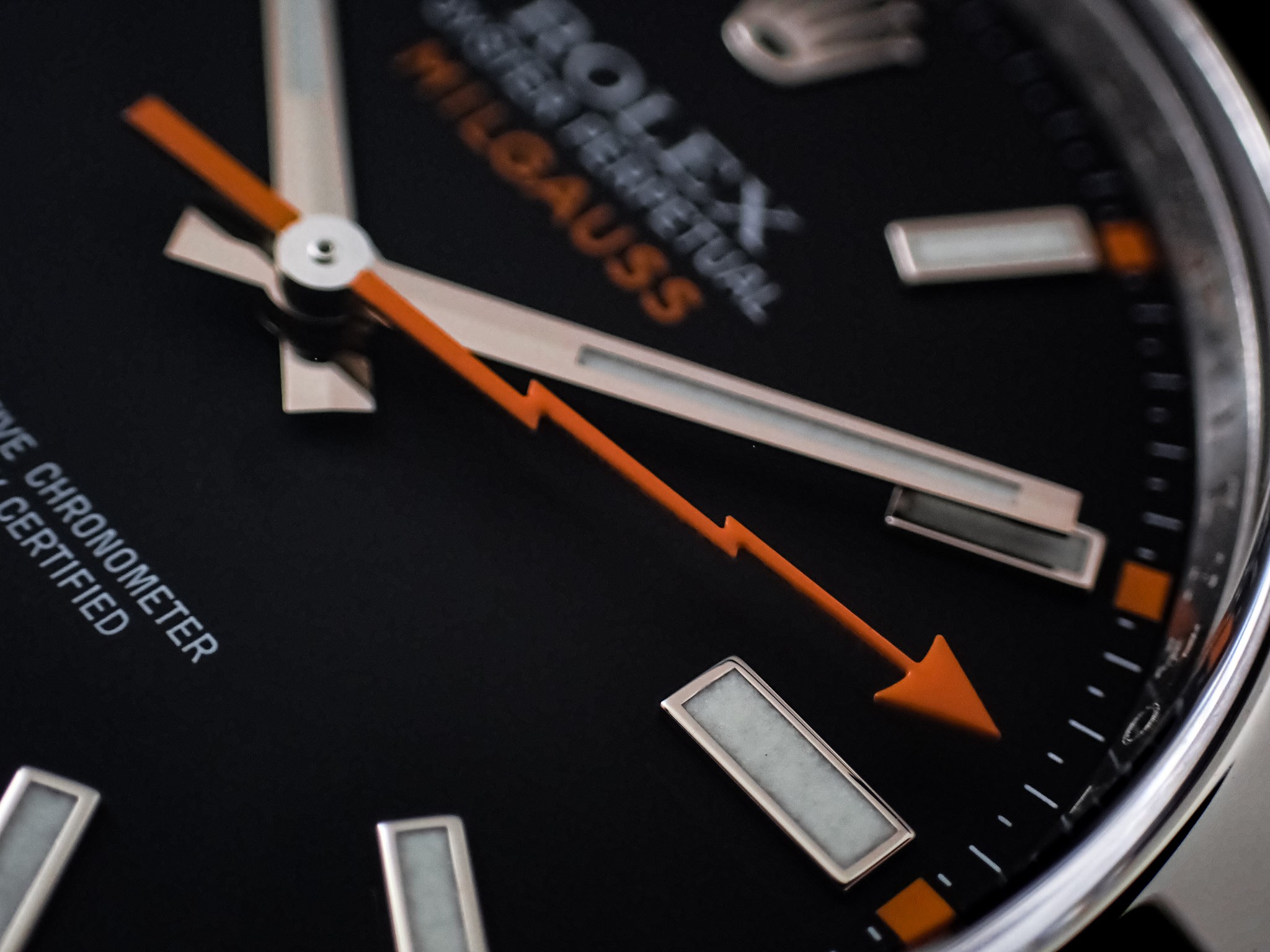 ROLEXの時計の中でもオレンジが使われているお時計と言えば、OY.PP.の「コーラルレッド」や、現行のEXPLORERⅡの24時間針など、ありますが、私が最近推しているのは「ミルガウス」です!
