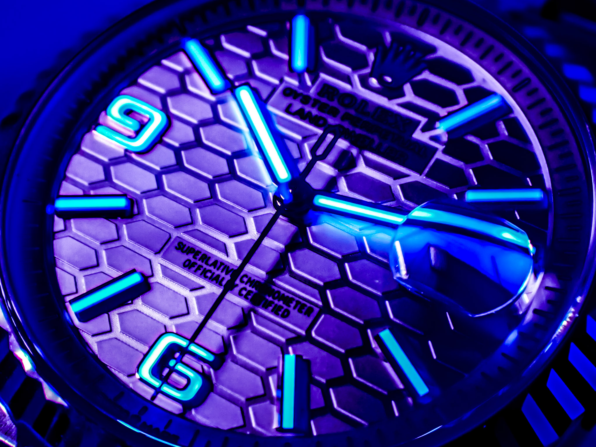 夜光にも秘密があり、時分針と6・9インデックスはクロマライト